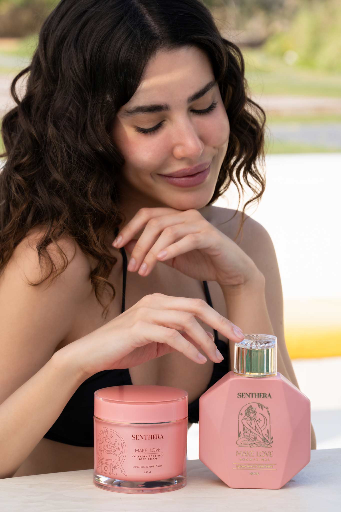 Senthera blends the sophistication of fine fragrances with the power of active skincare ingredients typically found in facial products. Our products are designed to create an indulgent sensory experience while delivering visible skin benefits.